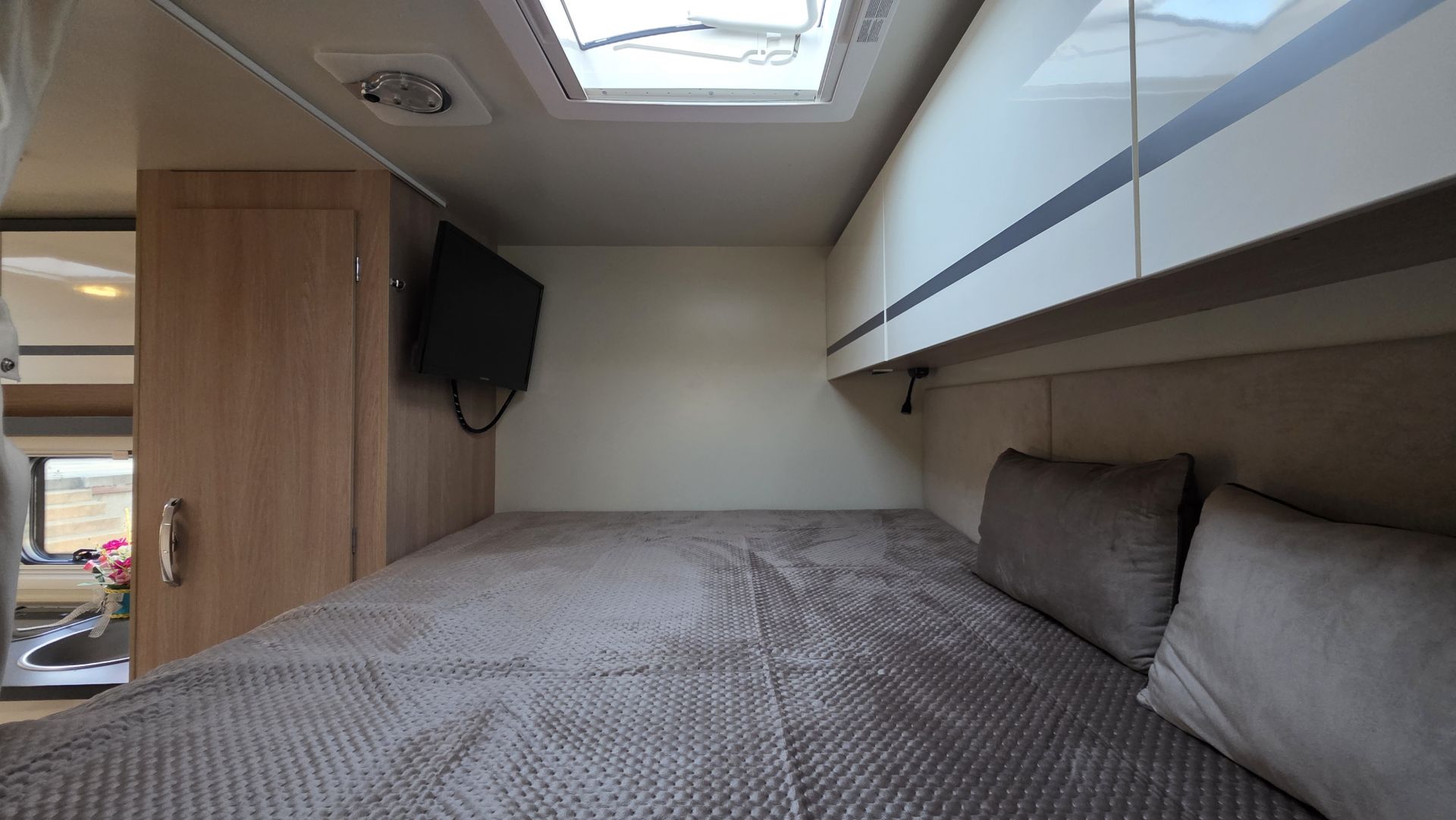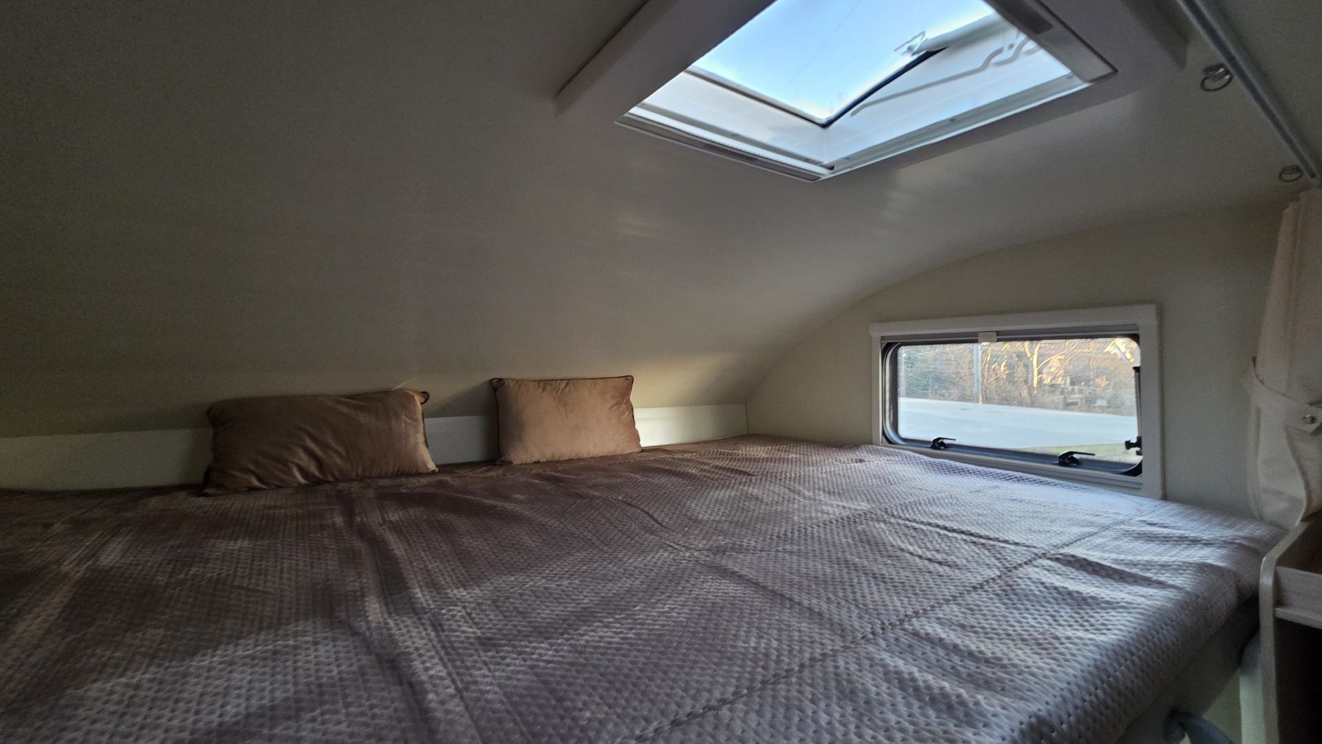 Saját fürdő, zuhany, konyha, hűtő, kényelmes alvóhelyek – minden adott, ami egy valódi „guruló otthonhoz” kell.